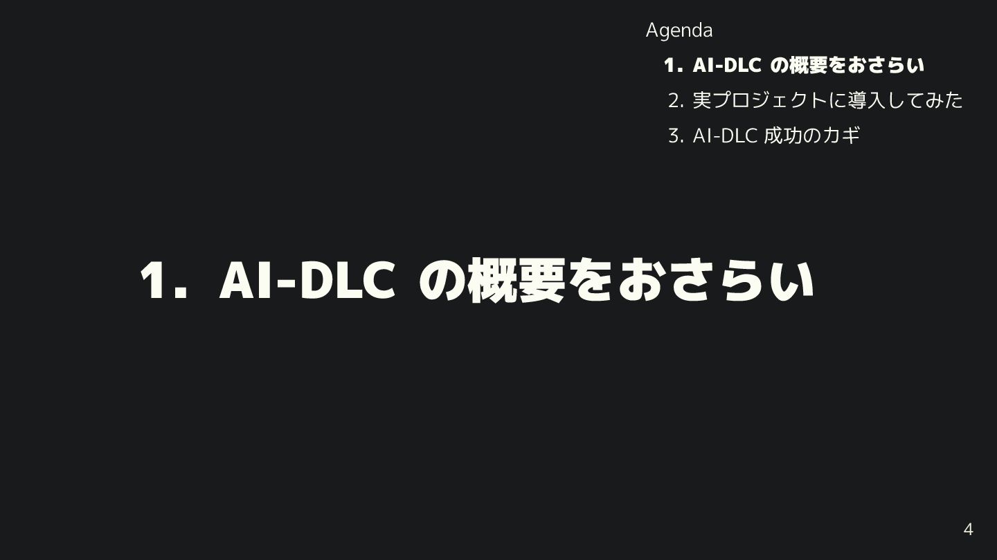 3. 1. AI-DLC の概要を さらい 4 Agenda 1. AI-DLC の概要を さらい