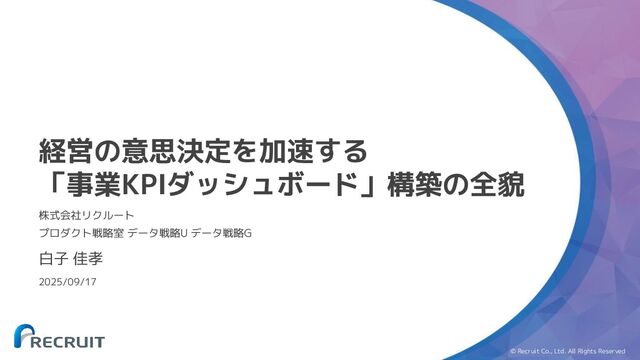 各事業が独自の体裁で報告しているため、横並びで事業コンディションを把握できない a. 各事業ごとに体裁(FMT)が違うため、横並びでの各事業コンディション把握が困難 b. そもそも、経営に報告している指標と事業でモニタリングしている指標や定義が異なる 2. KPIが単体で報告されているだけで、構造的に事業コンディションを把握できない a. 元々のKPIモニタリングでは予約数・ユーザー数など、いくつかの指標単体だけを報告していた b. KPI単体では事業を構造的に把握することが出来ず、 本当に見るべき指標が抜けていたり、数字の変動要因まで分からない状態 3. 他の指標数値が知りたい / 要因を深掘りしたい、となってもすぐにできない a. 経営判断に必要な重要な数値が組織やシステムに散らばっている状態 b. 仮に変動要因を深掘りしようとしても、データ抽出、分析、レポートまでに数週間かかることも c. かつ、指標定義が統一されていないため、人によって出す数字がバラバラ 上記によって、迅速かつ正確な経営判断が困難