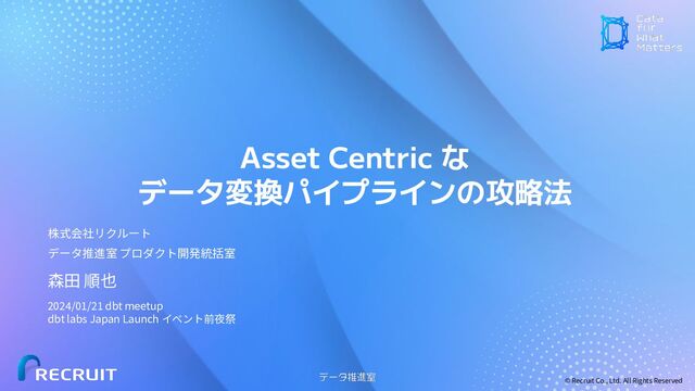 データ変換パイプラインの攻略法 株式会社リクルート データ推進室 プロダクト開発統括室 森⽥ 順也 2024/01/21 dbt meetup dbt labs Japan Launch イベント前夜祭