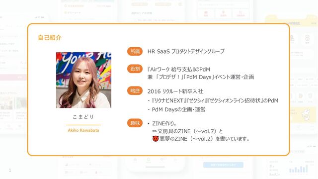 © Recruit Co., Ltd. 自己紹介 こまどり Akiko Kawabata 1 所属