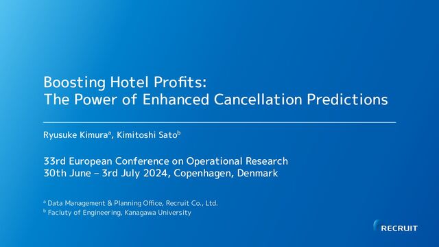 Kimuraa, Kimitoshi Satob a Data Management & Planning Office, Recruit Co., Ltd. b Facluty of Engineering, Kanagawa University 33rd European Conference on Operational Research 30th June – 3rd July 2024, Copenhagen, Denmark