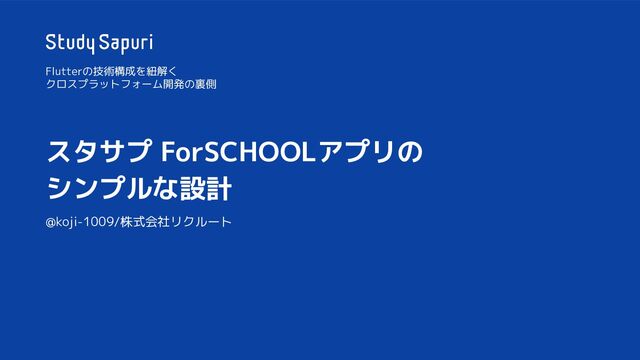 #Flutter_findy スタサプ ForSCHOOLアプリのシンプルな設計 スタサプ ForSCHOOLアプリの シンプルな設計 @koji-1009/株式会社リクルート Flutterの技術構成を紐解く クロスプラットフォーム開発の裏側