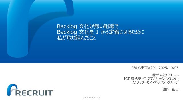 から定着させるために 私が取り組んだこと © Recruit Co., Ltd. 株式会社リクルート ICT 統括室 インフラソリューションユニット インフラサービスマネジメントグループ 政岡 裕士