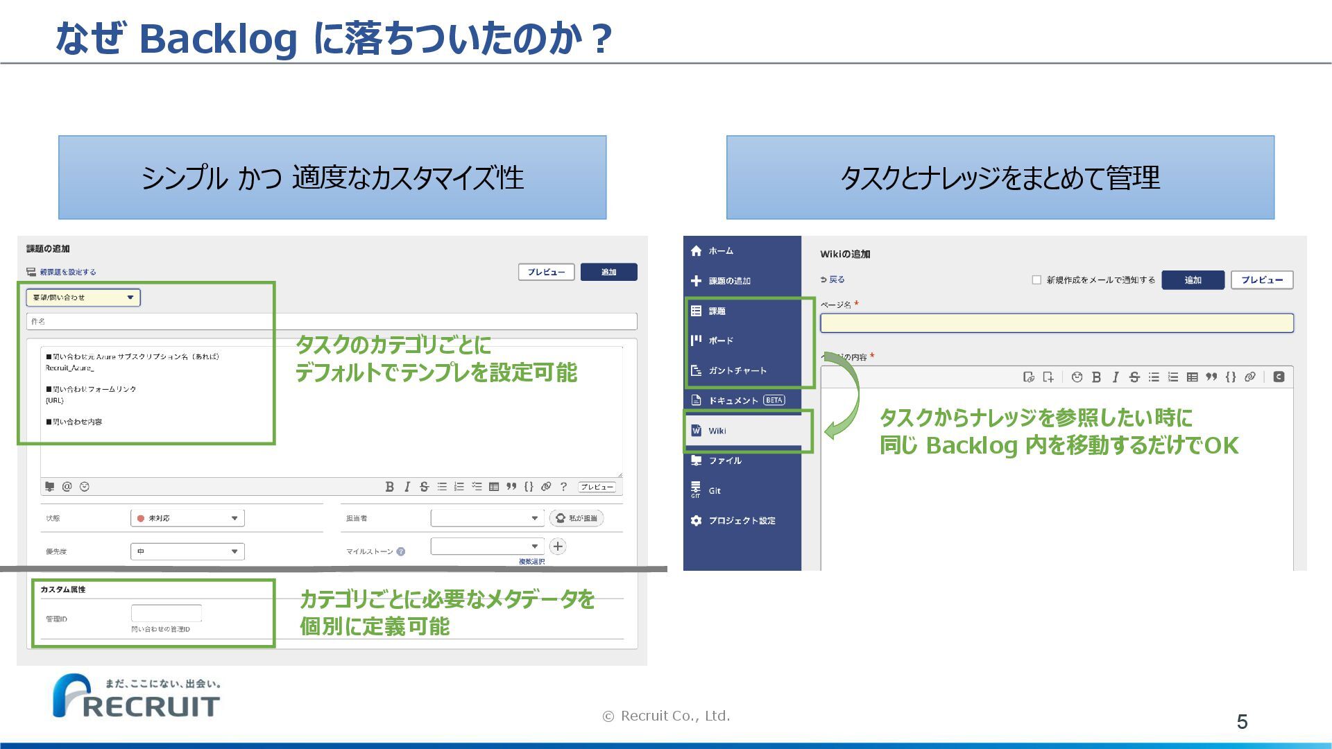 マスタ タイトルの書式設定 5 © Recruit Co., Ltd. なぜ Backlog に落ちついたのか?