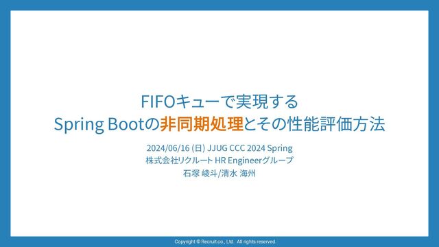 Copyright © Recruit.co., Ltd. All rights reserved. FIFOキューで実現する Spring Bootの非同期処理とその性能評価方法