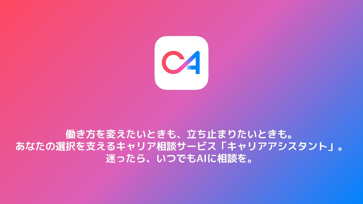 働き方を変えたいときも、立ち止まりたいときも。 あなたの選択を支えるキャリア相談サービス「キャリアアシスタント」。 迷ったら、いつでもAIに相談を。