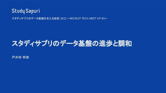 #Rtech スタディサプリのデータ基盤の進歩と調和 戸井田 明俊 スタディサプリのデータ基盤を支える技術 2022 ーRECRUIT TECH MEET UP