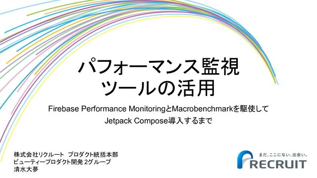 レベル 第 5 レベル マスタ タイトルの書式設定 1 パフォーマンス監視 ツールの活用 Firebase Performance MonitoringとMacrobenchmarkを駆使して Jetpack Compose導入するまで 株式会社リクルート プロダクト統括本部 ビューティープロダクト開発 2グループ 清水大夢
