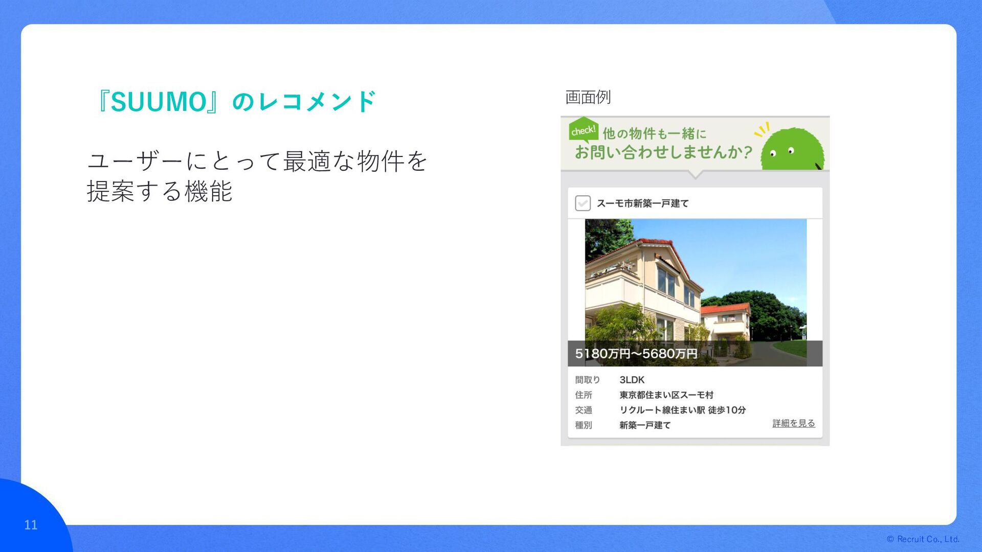 © Recruit Co., Ltd. 11 『SUUMO』のレコメンド ユーザーにとって最適な物件を 提案する機能 画面例