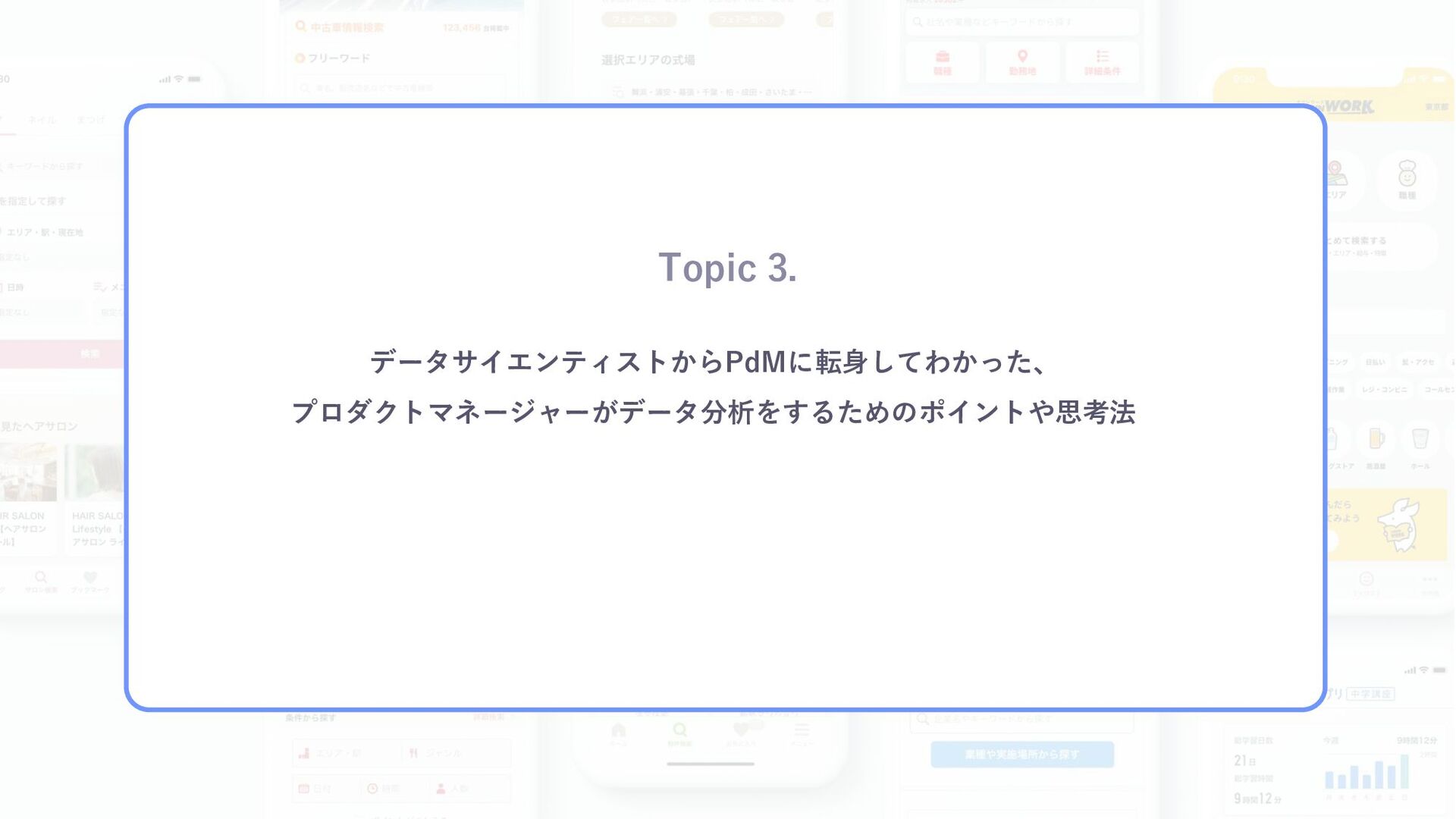 © Recruit Co., Ltd. Topic 3. データサイエンティストからPdMに転身してわかった、 プロダクトマネージャーがデータ分析をするためのポイントや思考法
