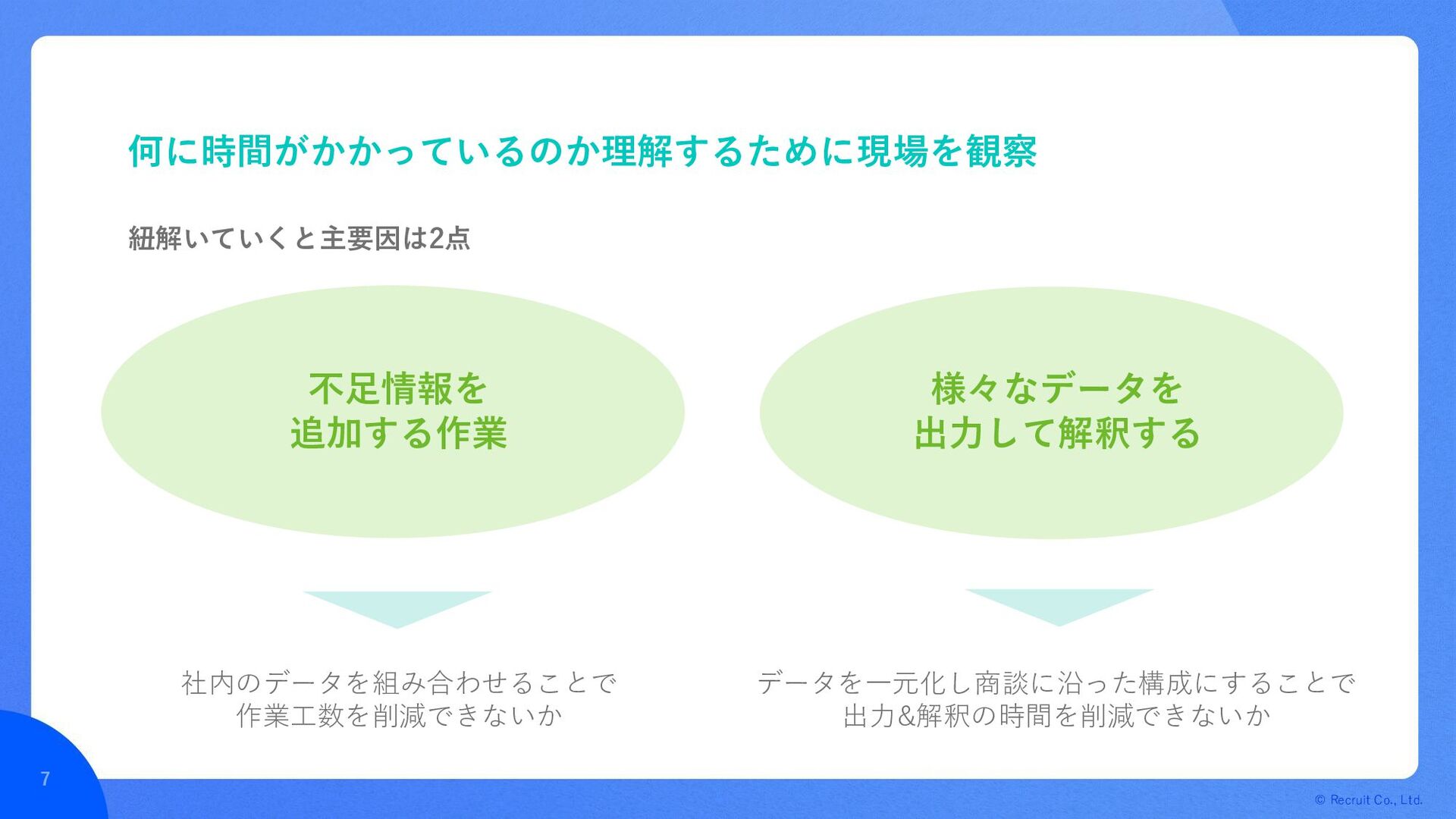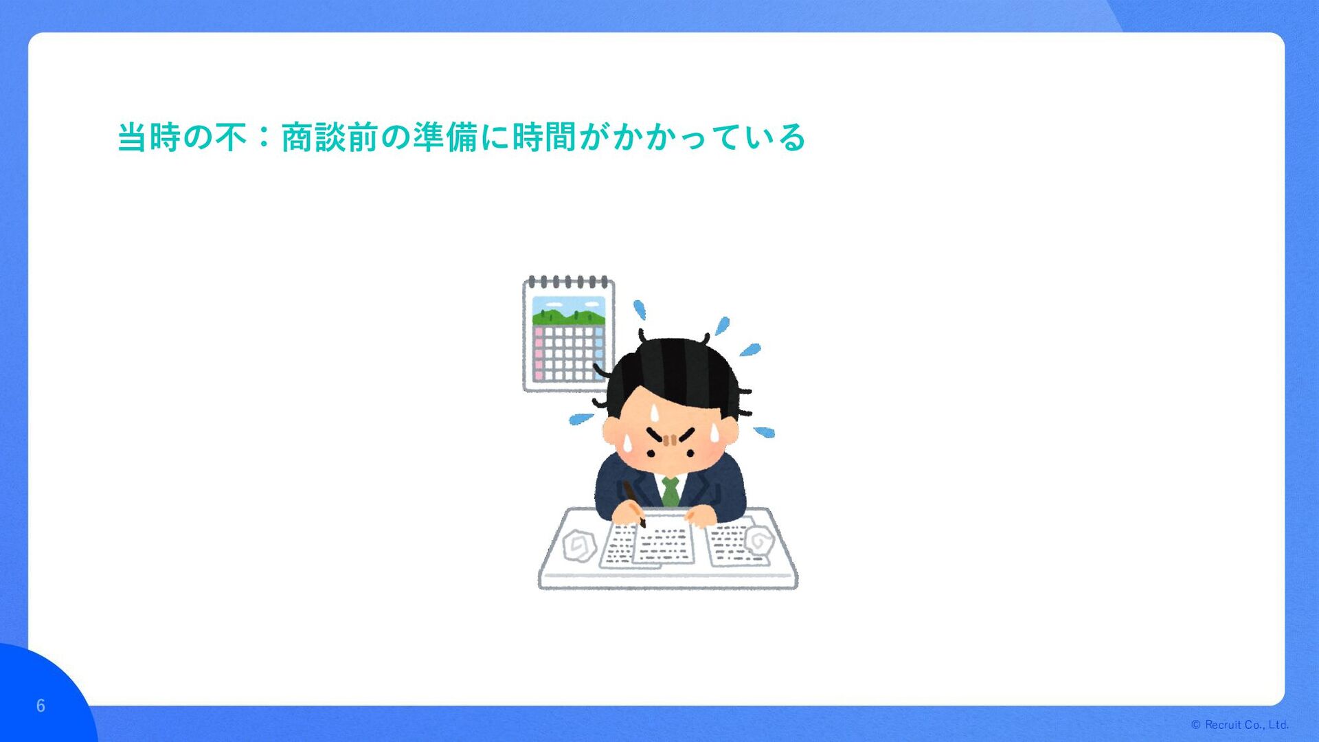 © Recruit Co., Ltd. 6 当時の不:商談前の準備に時間がかかっている
