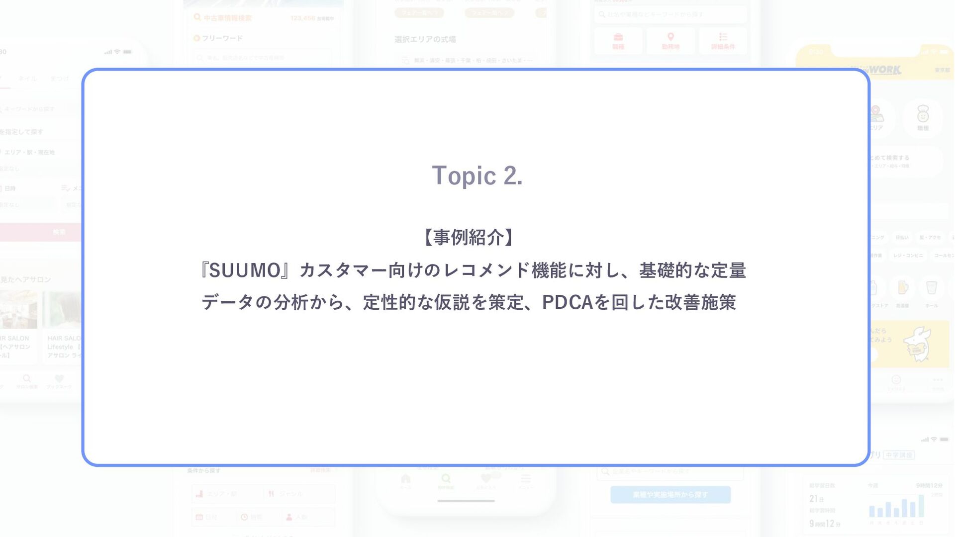 © Recruit Co., Ltd. Topic 2. 【事例紹介】 『SUUMO』カスタマー向けのレコメンド機能に対し、基礎的な定量 データの分析から、定性的な仮説を策定、PDCAを回した改善施策
