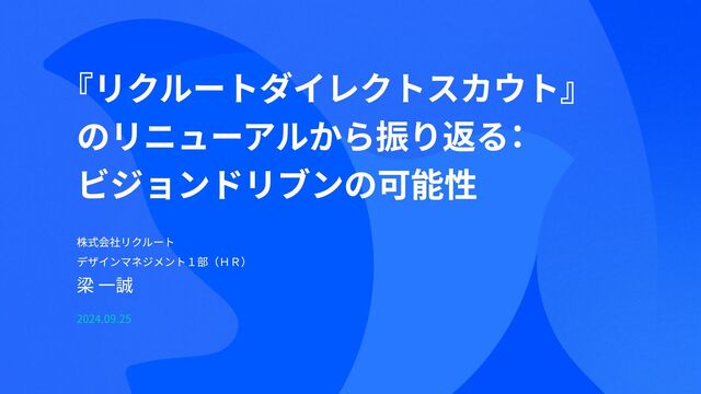 『リクルートダイレクトスカウト』 のリニューアルから振り返る: ビジョンドリブンの可能性 株式会社リクルート デザインマネジメント1部(HR) 梁 一誠 2024.09.25