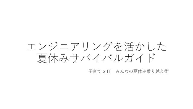 エンジニアリングを活かした 夏休みサバイバルガイド ⼦育て x IT みんなの夏休み乗り越え術