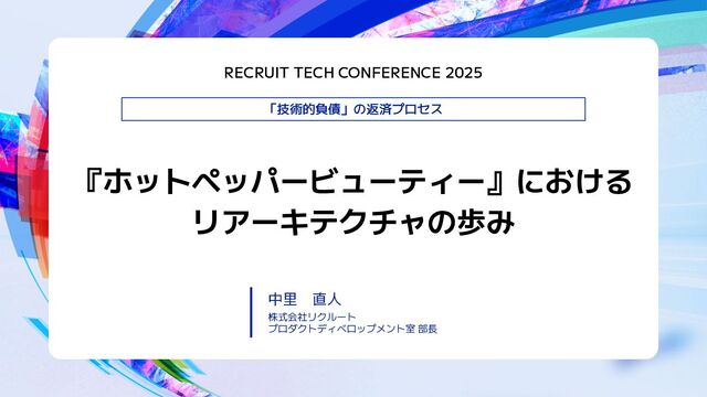 『ホットペッパービューティー』における リアーキテクチャの歩み RECRUIT TECH CONFERENCE 2025 「技術的負債」の返済プロセス 中里 直人 株式会社リクルート プロダクトディベロップメント室