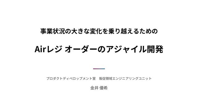 Airレジ オーダーのアジャイル開発 事業状況の大きな変化を乗り越えるための プロダクトディベロップメント室 販促領域エンジニアリングユニット 金井 優希