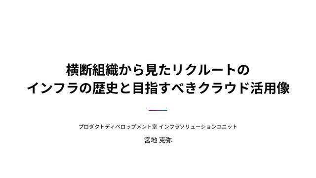 横断組織から見たリクルートの インフラの歴史と目指すべきクラウド活用像 プロダクトディベロップメント室 インフラソリューションユニット 宮地 克弥