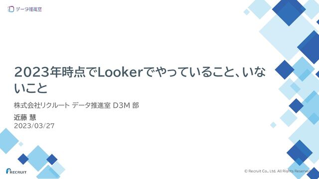 © Recruit Co., Ltd. All Rights Reserved 2023年時点でLookerでやっていること、いな いこと 株式会社リクルート