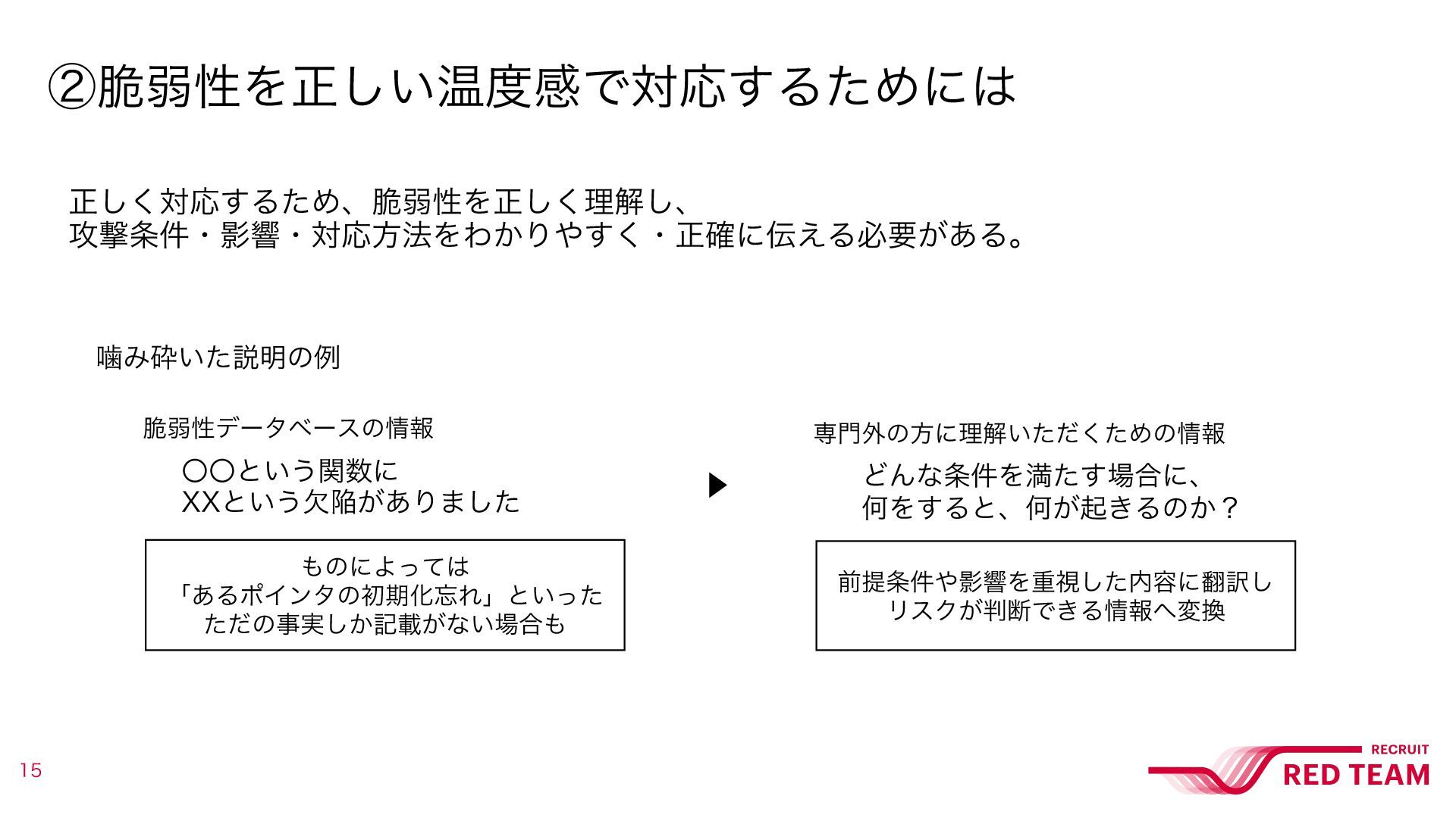 • Ұݟཧղ͕͍͠੬ऑੑͰɺҰͭͣͭඥղ͘͜ͱͰཧղͰ͖Δ͜ͱΛମݧ͍͖ͨͩ·ͨ͠ o ΛͬͯݟղΛड़ΔͨΊʹɺݪཧΛؚΊਖ਼͘͠੬ऑੑΛཧղ͢Δ͜ͱ͕େ o ਖ਼͘͠ཧղ͠ɺલఏ݅Өڹ͕໌֬ʹͳΔ͜ͱͰɺରԠͷඞཁੑΛਖ਼֬ʹஅͰ͖Δ • օ͞ΜͷपΓͷηΩϡϦςΟΤϯδχΞͷՁɺࠓճͷൃදͷΑ͏ͳઆ໌ೳྗʹ͋Γ·͢ o