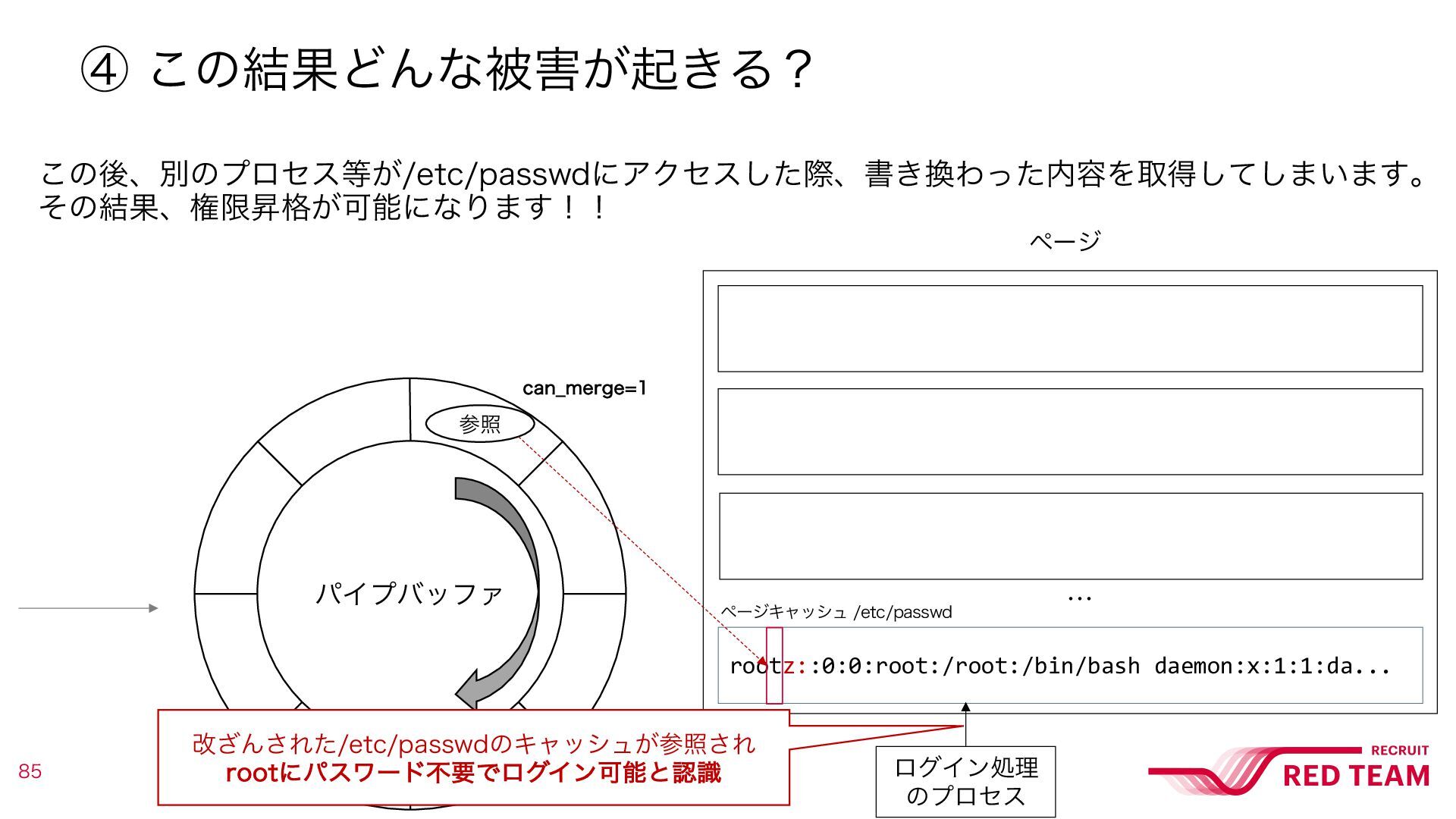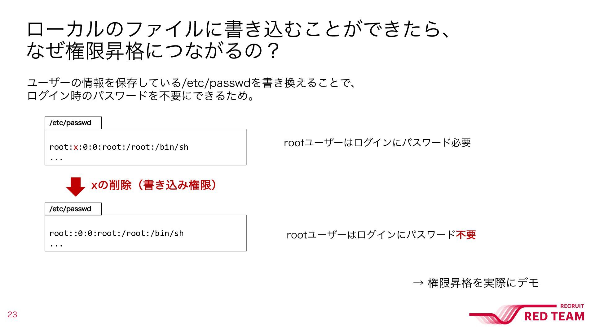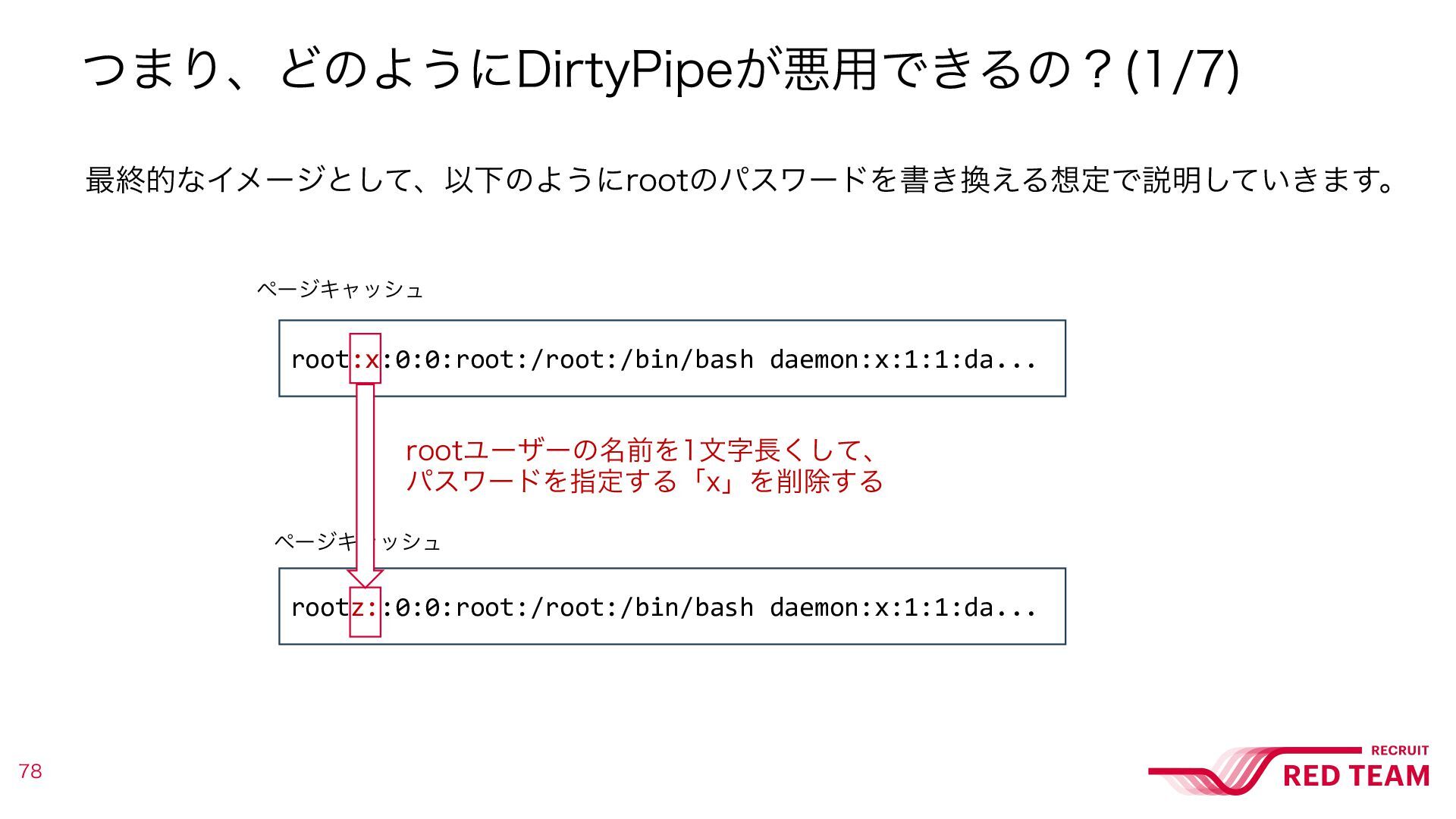 ͭ·ΓɺͲͷΑ͏ʹ%JSUZ1JQF͕ѱ༻Ͱ͖Δͷʁ ࠷ऴతͳΠϝʔδͱͯ͠ɺҎԼͷΑ͏ʹSPPUͷύεϫʔυΛॻ͖͑ΔఆͰઆ໌͍͖ͯ͠·͢ɻ ϖʔδΩϟογϡ root:x:0:0:root:/root:/bin/bash daemon:x:1:1:da... ϖʔδΩϟογϡ rootz::0:0:root:/root:/bin/bash daemon:x:1:1:da... SPPUϢʔβʔͷ໊લΛจࣈͯ͘͠ɺ