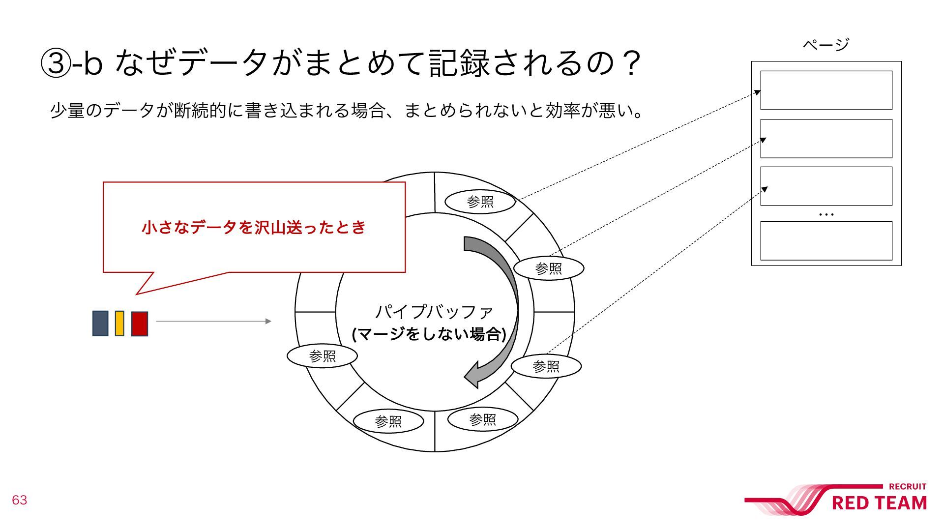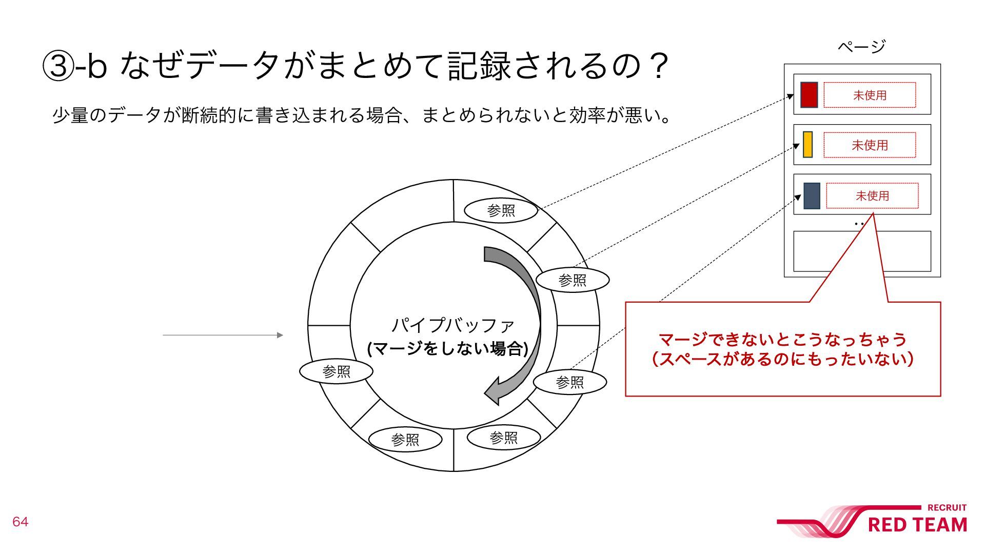 ᶅD DBO@NFSHFϑϥάͳͥඞཁͳͷʁ σʔλ͕ύΠϓʹॻ͖ࠐ·ΕΔͷͰͳ͘ɺ ͢ͰʹผͰ֬อ͞Εͨϖʔδͷࢀর͕ɺύΠϓʹͦͷ··͞ΕΔ͜ͱ͕͋ΔͨΊɻ ͦͷ߹ɺόοϑΝͰཧ͍ͯ͠ΔϖʔδͰͳ͍ͨΊɺ·ͱΊ͍͚ͯͳ͍ɻ ύΠϓόοϑΝ ʜ ϖʔδ ࢀর ࢀর