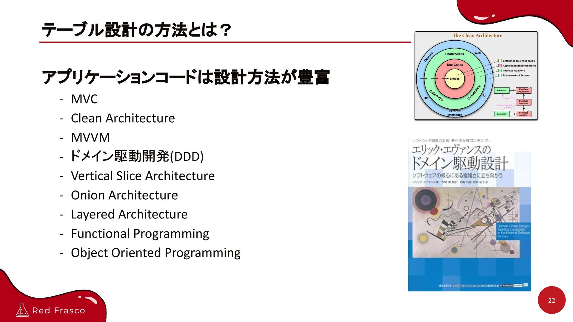 テーブル設計の方法とは? 22 アプリケーションコードは設計方法が豊富 - MVC - Clean Architecture - MVVM