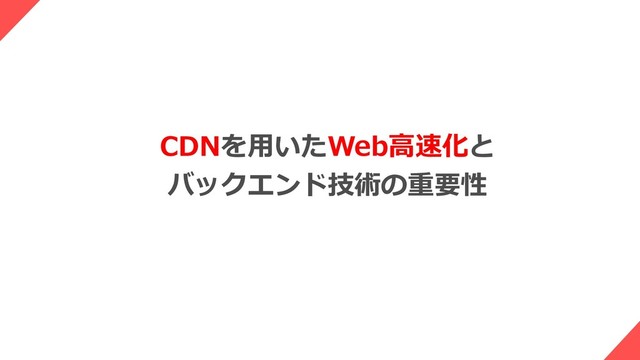 CDNを⽤いたWeb⾼速化と バックエンド技術の重要性