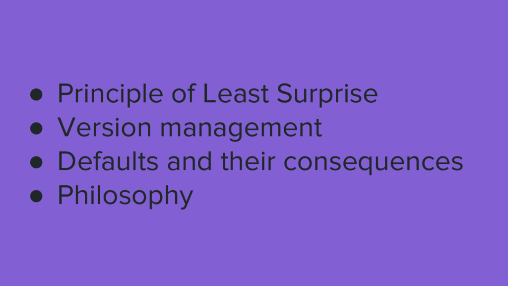 The principle of least surprise means principle of least my surprise. And it means the principle of least surprise after you learn Ruby very well.” A Conversation with Yukihiro Matsumoto, Part I