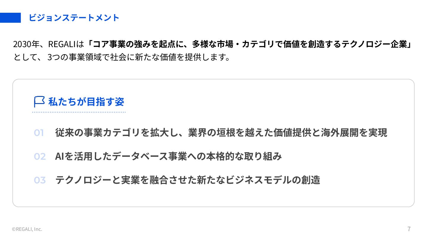 ©REGALI, Inc. VISION 2030 6 コア事業の強みを起点に、 多様な市場‧カテゴリで価値を創造する テクノロジー企業へ
