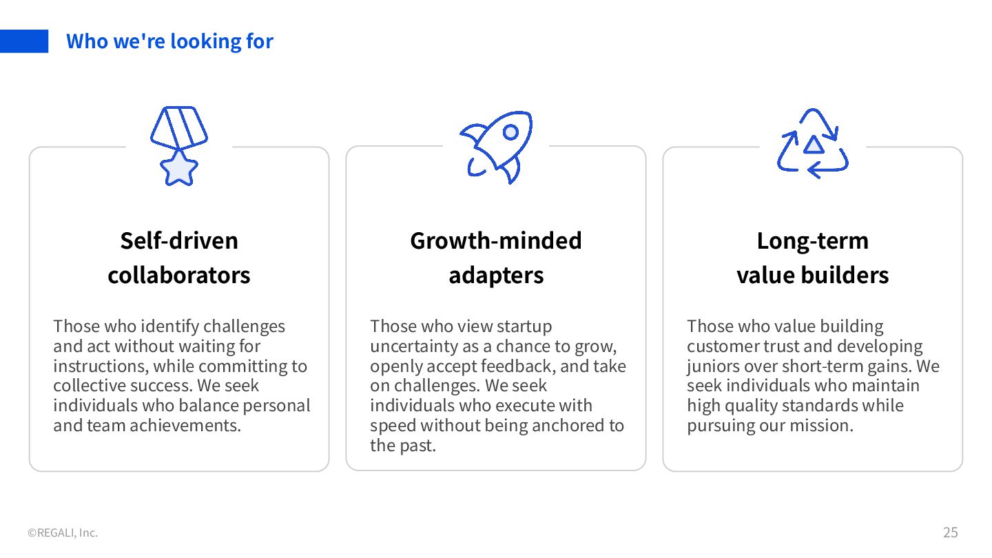 the end. We hope this culture deck has given you a sense of our passion, values, and the future we're building. At REGALI, we're looking for teammates to join us in making tomorrow better for people everywhere. Scan the QR code to see our open positions. We genuinely look forward to meeting you. Thank you 35 View open positions here