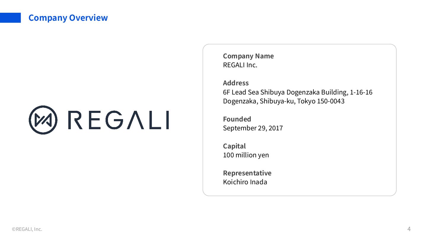 6F Lead Sea Shibuya Dogenzaka Building, 1-16-16 Dogenzaka, Shibuya-ku, Tokyo 150-0043 Founded September 29, 2017 Capital 100 million yen Representative Koichiro Inada