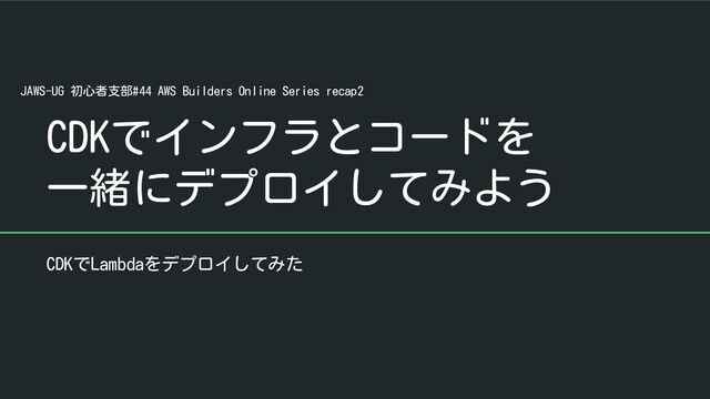 CDKでインフラとコードを 一緒にデプロイしてみよう CDKでLambdaをデプロイしてみた JAWS-UG 初心者支部#44 AWS Builders Online Series recap2