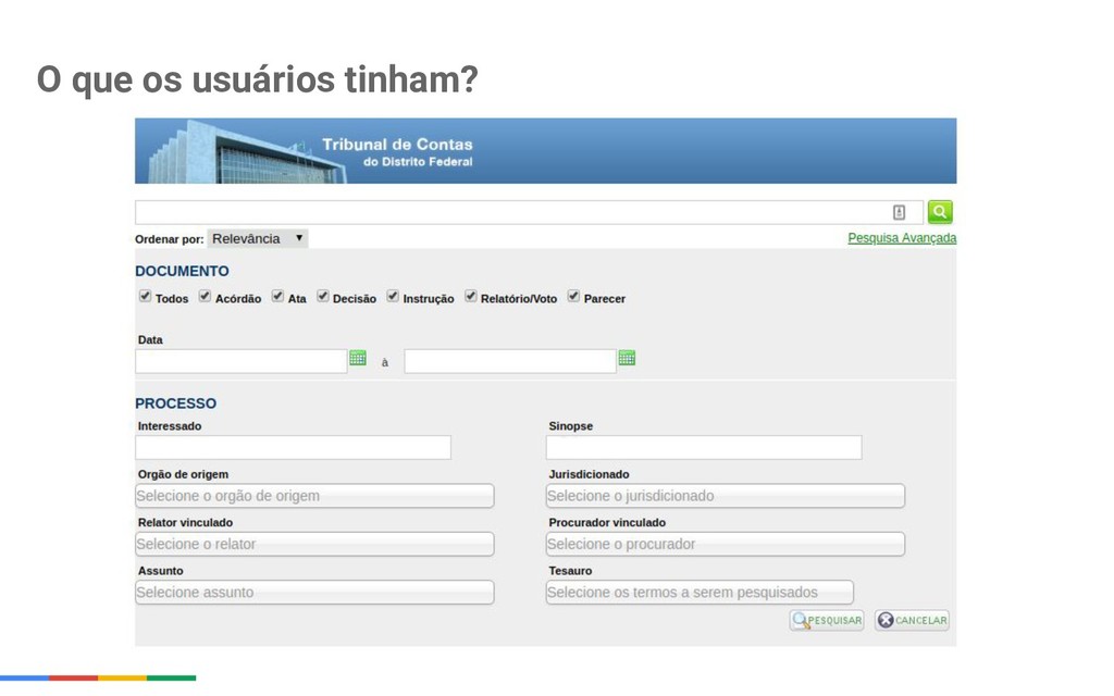 O Busca TCDF surgiu da necessidade de se aprimorar a relevância dos resultados encontrados a partir de uma pesquisa textual onde os usuários esperavam uma melhor performance e facilidade de uso e para isso a TI do TCDF se baseou na usabilidade do melhor buscador de todos os tempos e conquistou seus usuários e objetivos.