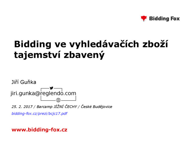 6) Ukázka co může biddingový automat potřebovat k nasazení - https://www.bidding-fox.cz/