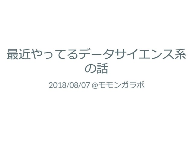 最近やってるデータサイエンス系 最近やってるデータサイエンス系 の話 の話 2018/08/07 @モモンガラボ