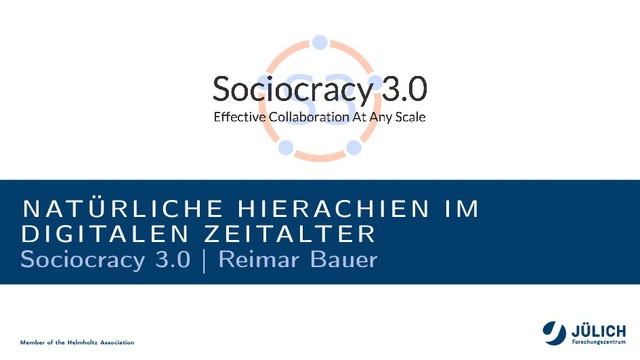 Damit gibt Sociocracy 3.0 als praktischer Leitfaden uns Muster für Prozesse mit denen wir in der Open Source Welt vertraut sind, um diese unseren Kollegen erklären zu können.