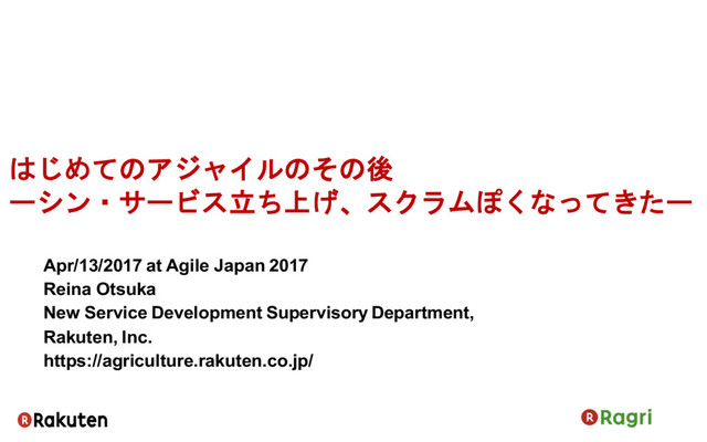 はじめてのアジャイルのその後 ーシン・サービス立ち上げ、スクラムぽくなってきたー Apr/13/2017 at Agile Japan 2017 Reina Otsuka New