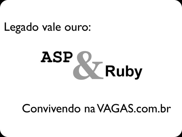 Legado vale ouro: VAGAS.com.br ASP Convivendo na VAGAS.com.br &Ruby