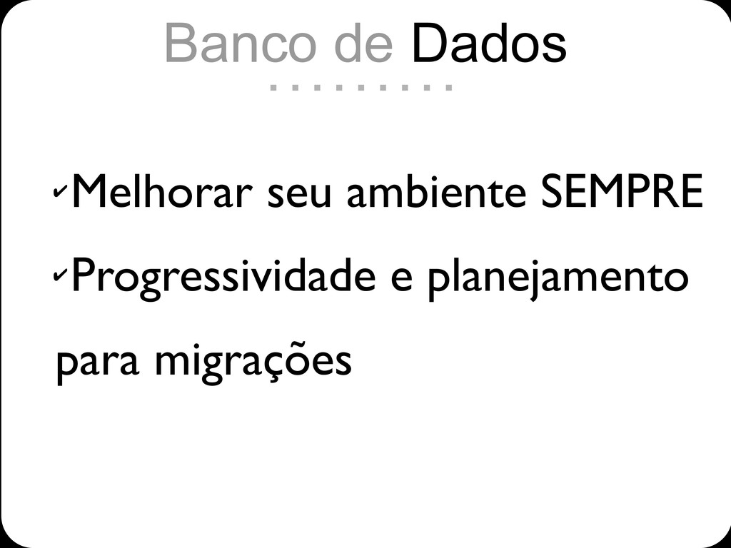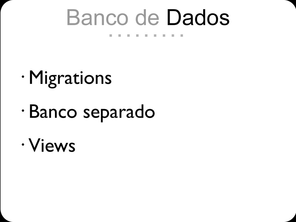 • Migrations • Banco separado • Views Banco de Dados