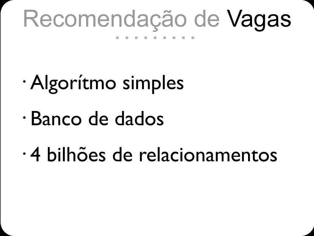 • Algorítmo simples • Banco de dados • 4 bilhões