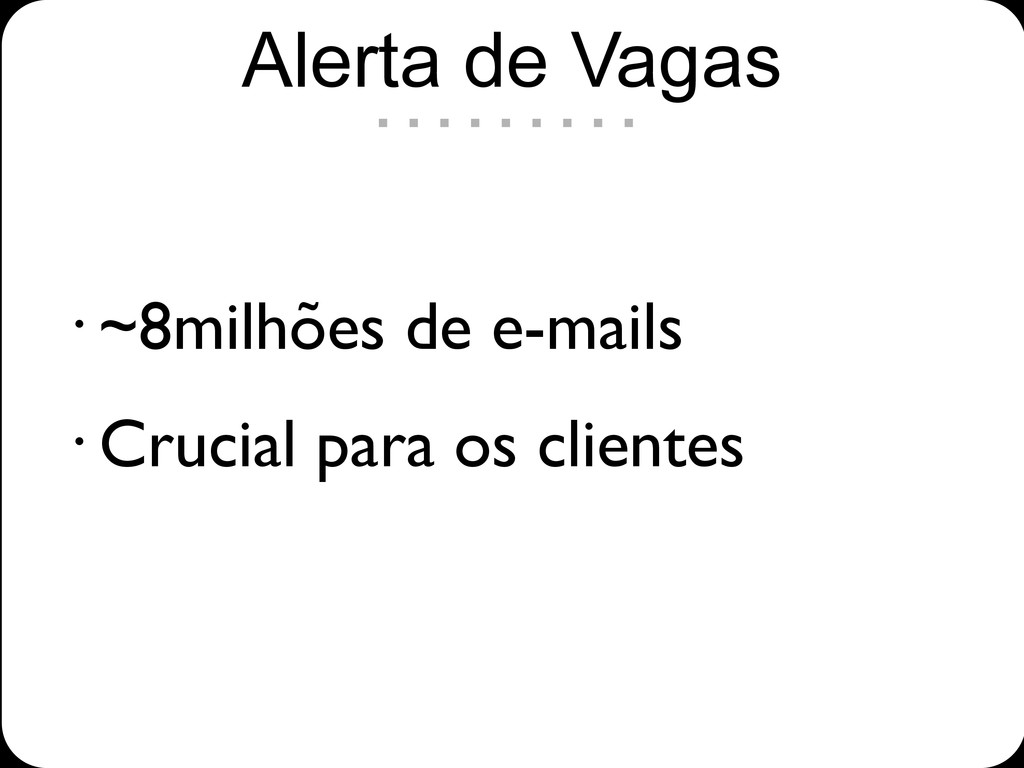 • ~8milhões de e-mails • Crucial para os clientes Alerta