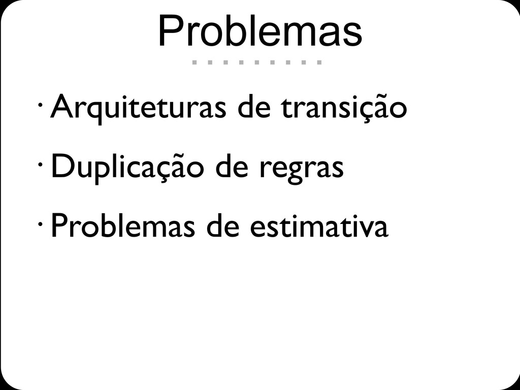 • Arquiteturas de transição • Duplicação de regras • Problemas