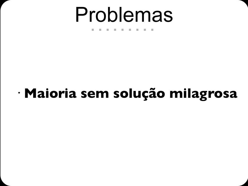 • Maioria sem solução milagrosa Problemas