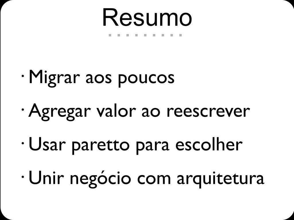 • Migrar aos poucos • Agregar valor ao reescrever •
