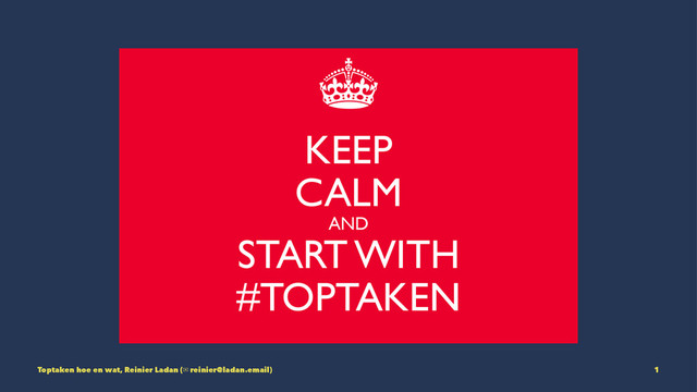 Toptaken veranderen aannames in feiten • Toptaken zijn door organisatie én eindgebruiker samengesteld Toptaken hoe en wat, Reinier Ladan (✉