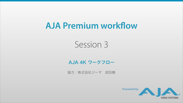 Session 3:AJA 4K ワークフロー(株式会社リーンフェイズ) ・Acquire(収録)|スマートな4K収録を目指して ・Edit(編集)|ProResコーデックで実現するHDライクな4K編集 ・Convert(変換)|HD〜4K あらゆるフォーマットに対応