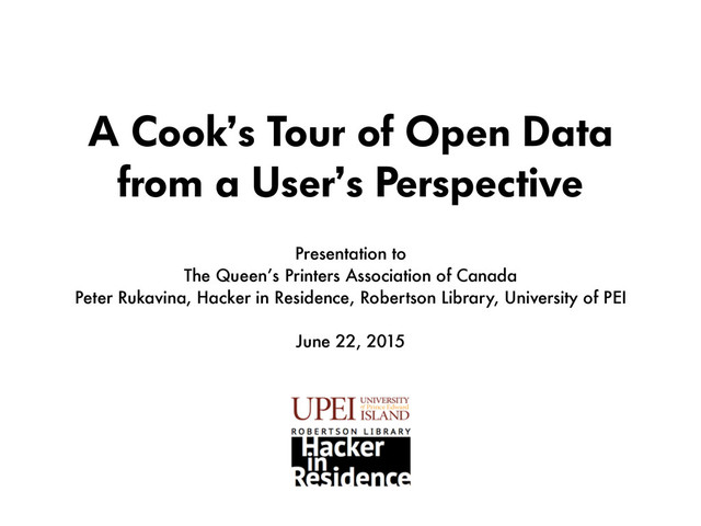 A Cook’s Tour of Open Data from a User’s Perspective (Queen's Printers)