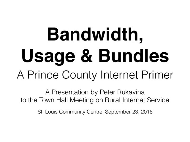 A presentation to constituents of Robert Morrissey, MP at a Town Hall on Rural Internet Access, September 23, 2016 at St. Louis Community Centre, Prince Edward Island.