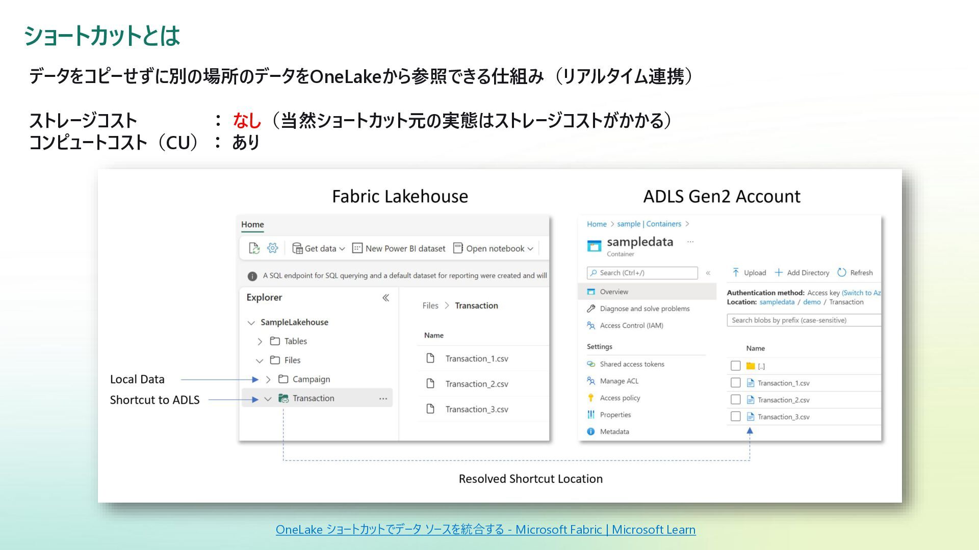 3. ショートカットとは OneLake ショートカットでデータ ソースを統合する - Microsoft Fabric | Microsoft Learn