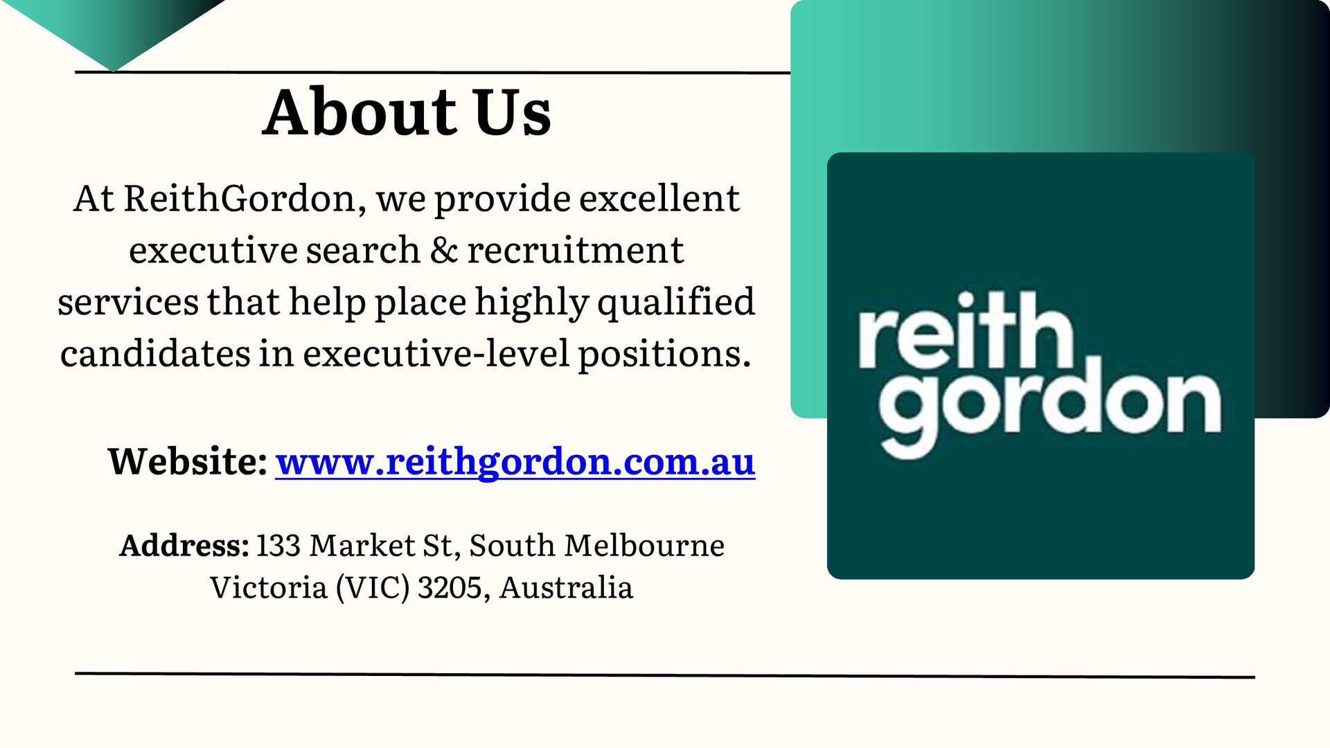 that help place highly qualified candidates in executive-level positions. About Us Website: www.reithgordon.com.au Address: 133 Market St, South Melbourne Victoria (VIC) 3205, Australia